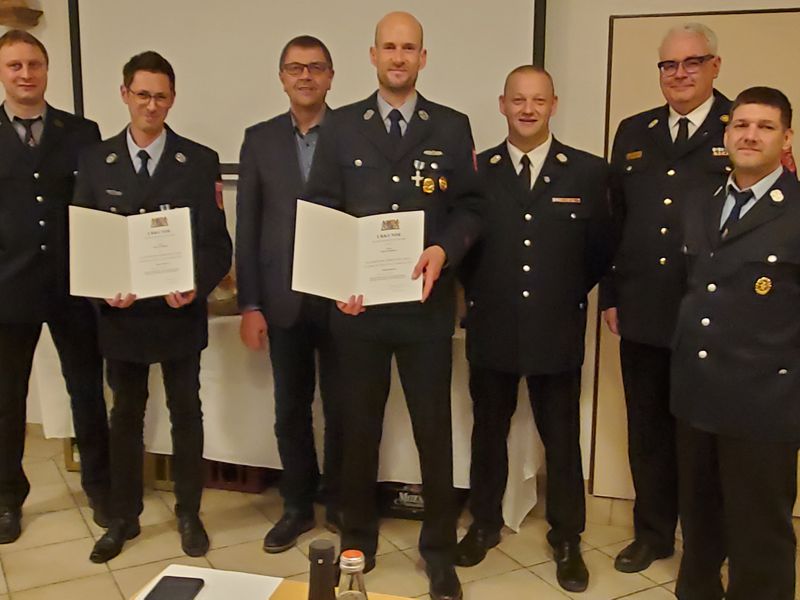 Besonders freuten sich Kommandant Matt und Vorstand Gewitsch, dass beide geehrten Kameraden, aus anderen Wehren nach Horgauergreut gekommen sind und ihren Wohnortwechsel nicht genutzt haben um den Dienst an den Nagel zu hängen, sondern sich weiterhin für die Gemeinschaft engagieren und dankten auch im Namen des Feuerwehrvereins.